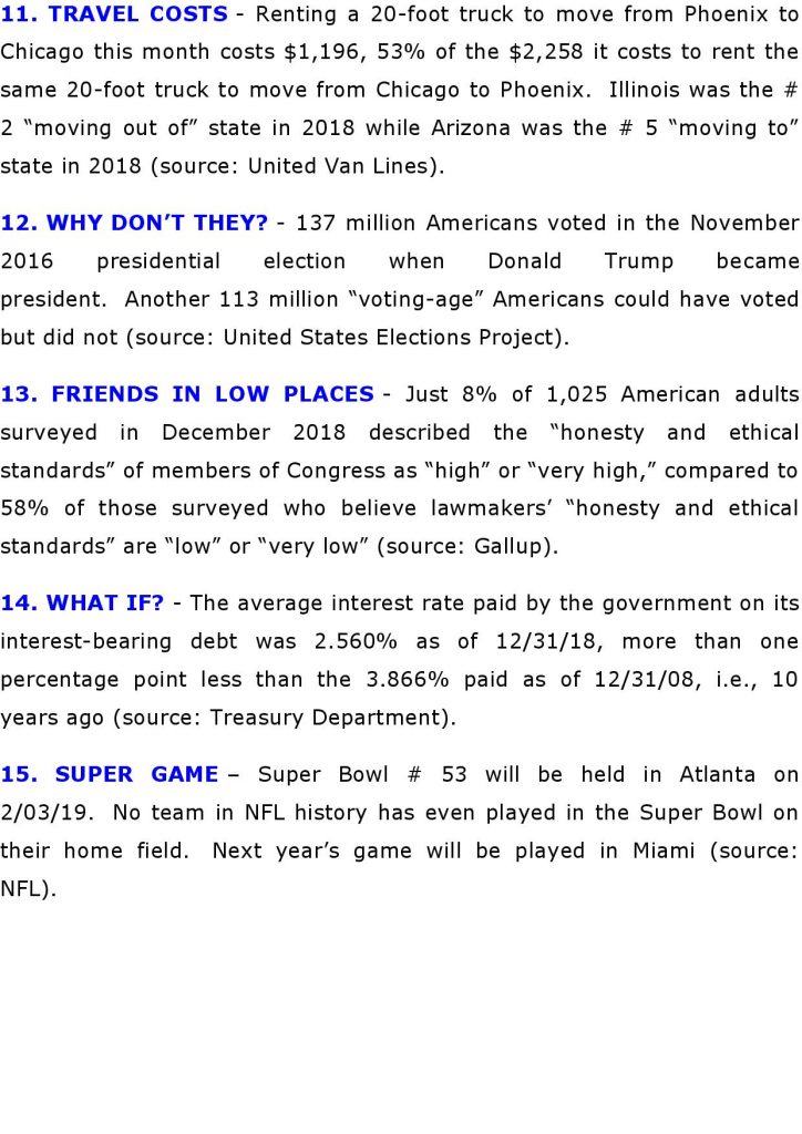 15 Weekly Stats for Financial Advisors: Week of January 21, 2019